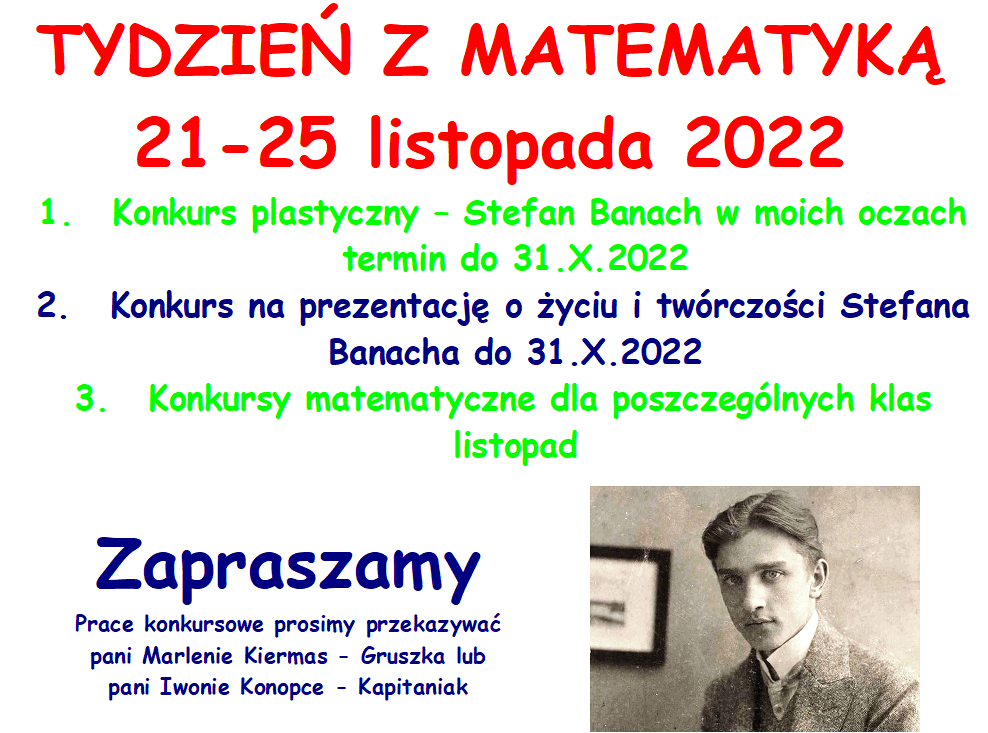 W celu popularyzacji matematyki "Królowej Nauk", zapraszamy wszystkich uczniów naszej szkoły do udziału w konkursach. Dla uczestników nagrody za aktywność, a dla zwycięzców nagrody rzeczowe.